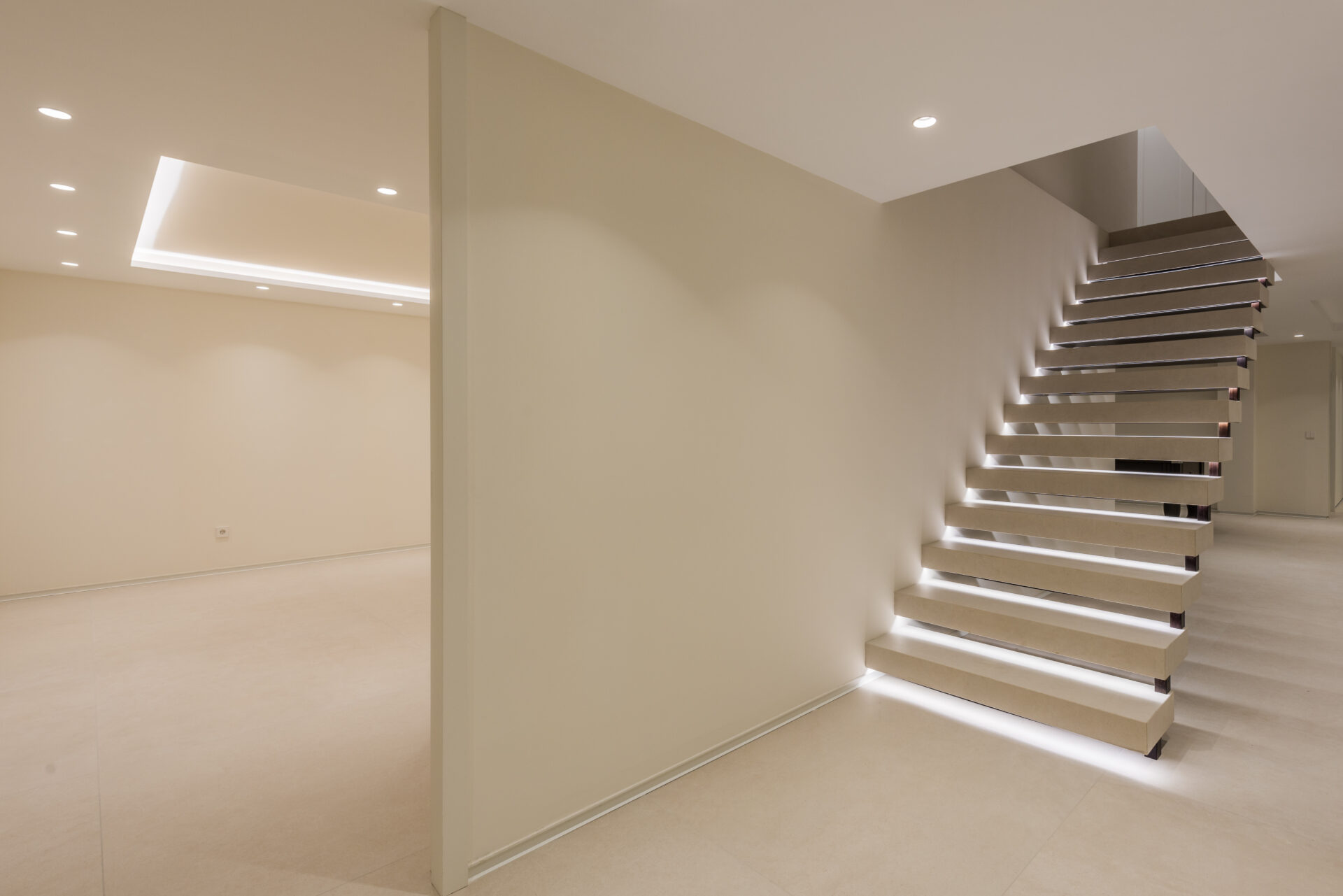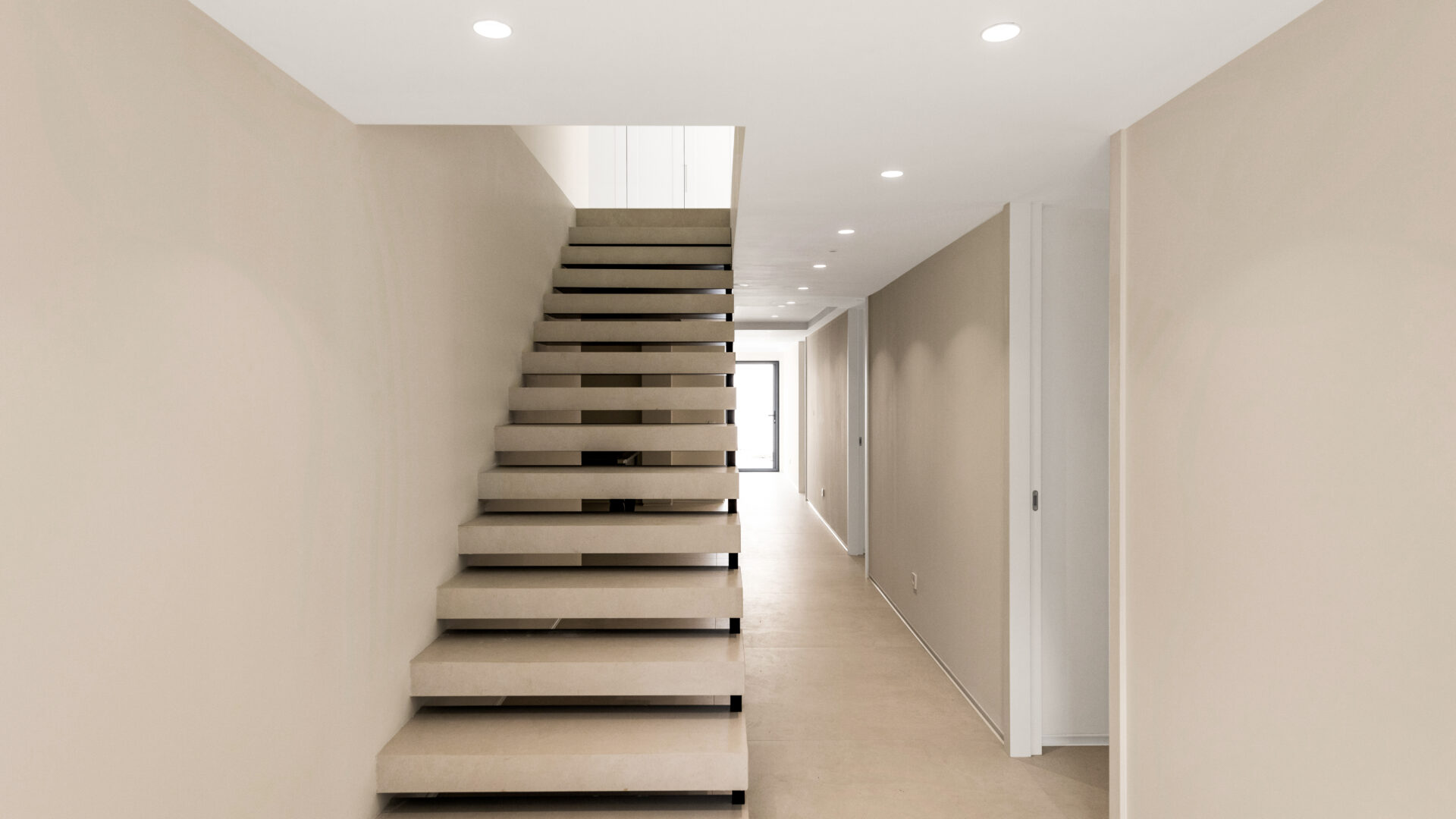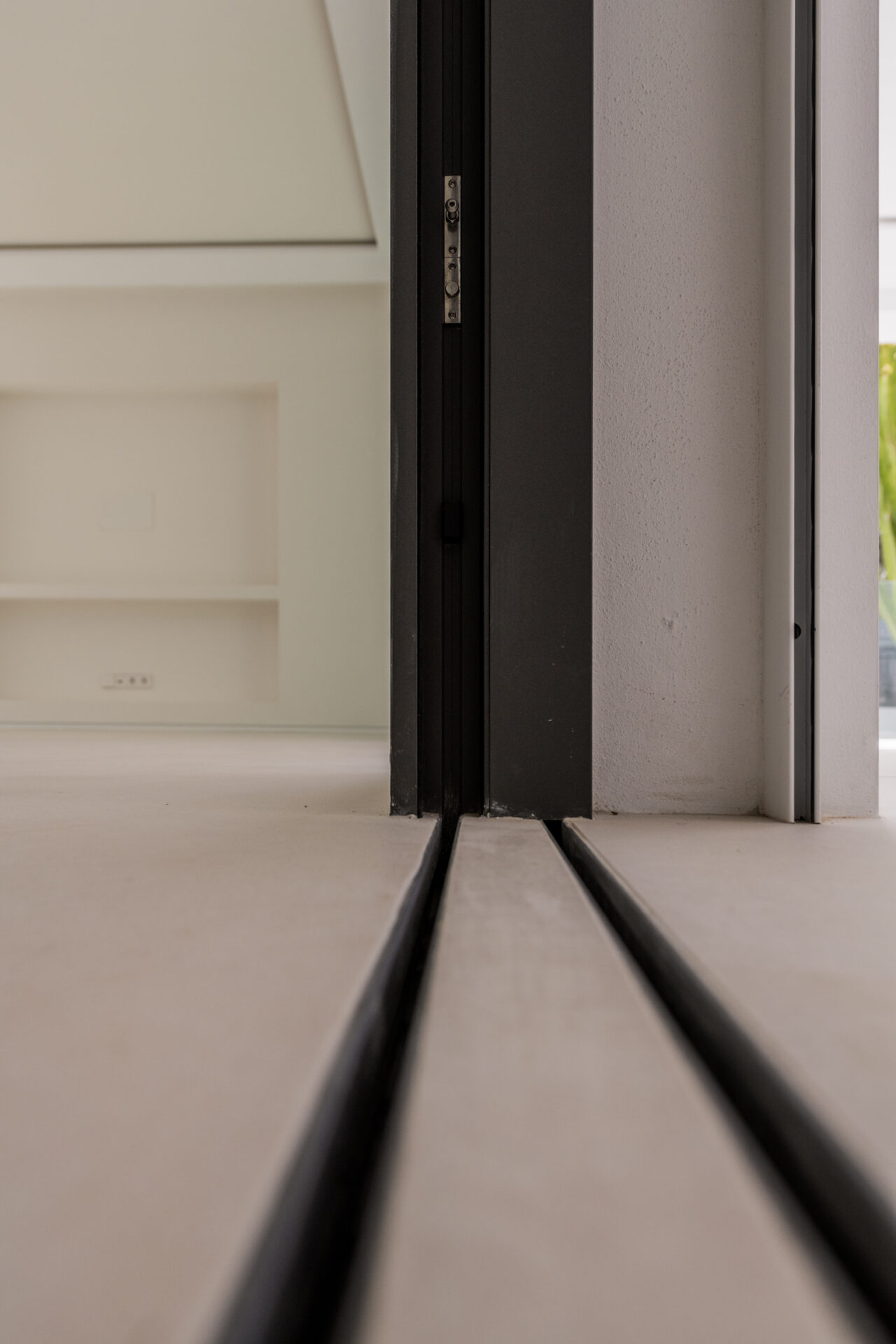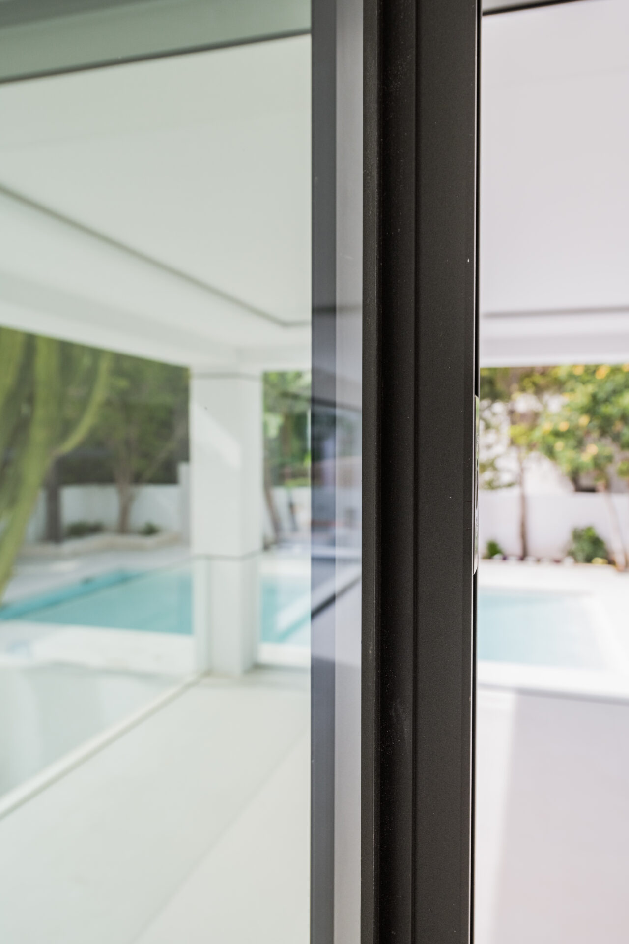 Sobre una parcela de 900 m², la propiedad ofrece 419 m² construidos con amplios espacios llenos de luz natural gracias a su carpintería minimalista y sus grandes ventanales.
